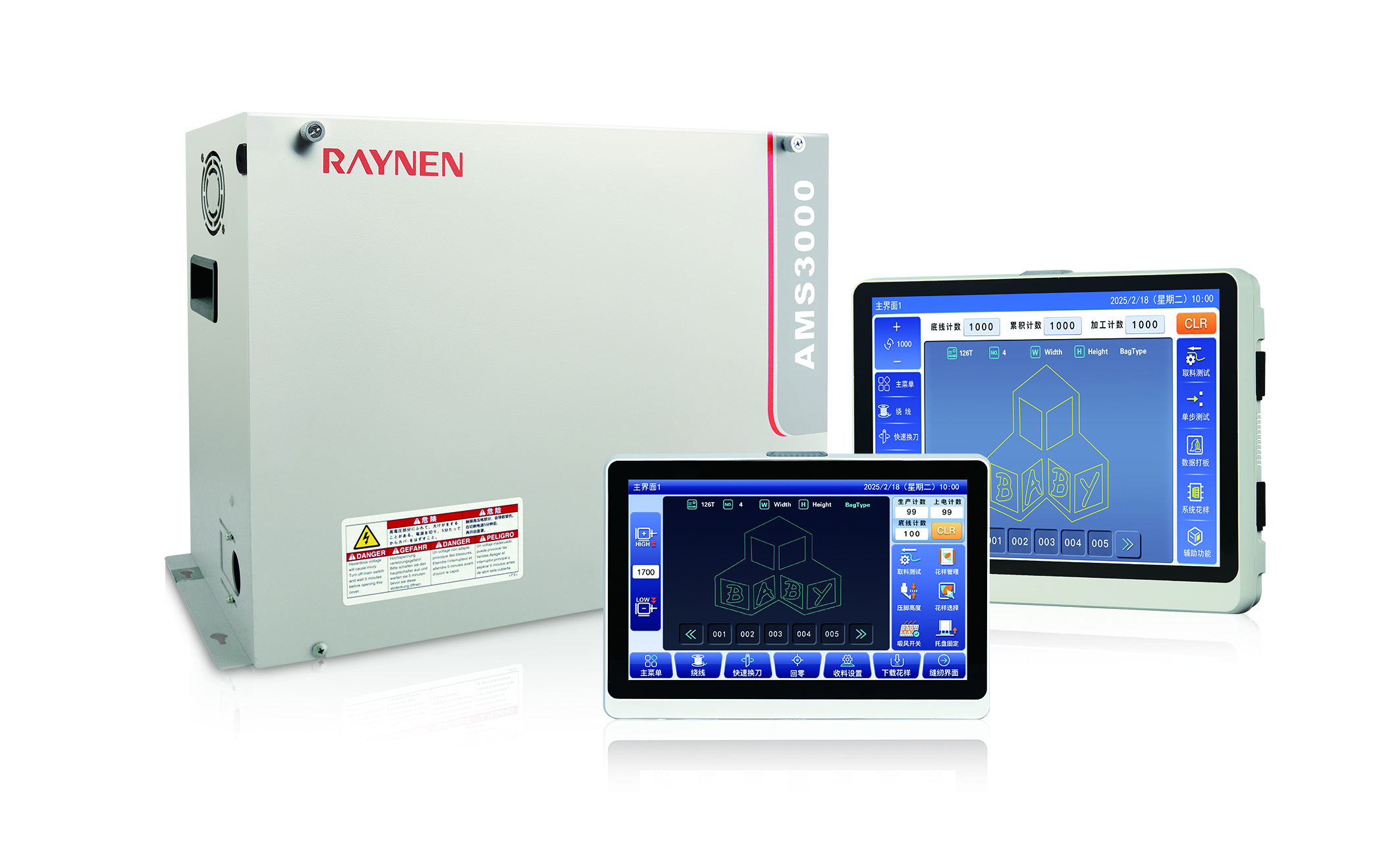 全自動激光開袋機、全自動貼袋機、多頭橡筋機和袖叉機等