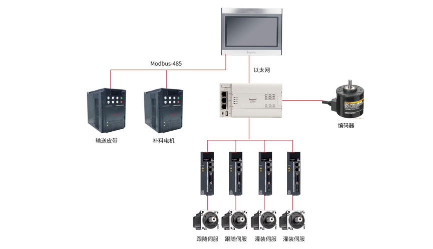 PLC和HMI都標(biāo)配以太網(wǎng)口,不但保證設(shè)備的通訊穩(wěn)定,同時也方便跟上下游設(shè)備組網(wǎng),實現(xiàn)設(shè)備互聯(lián)