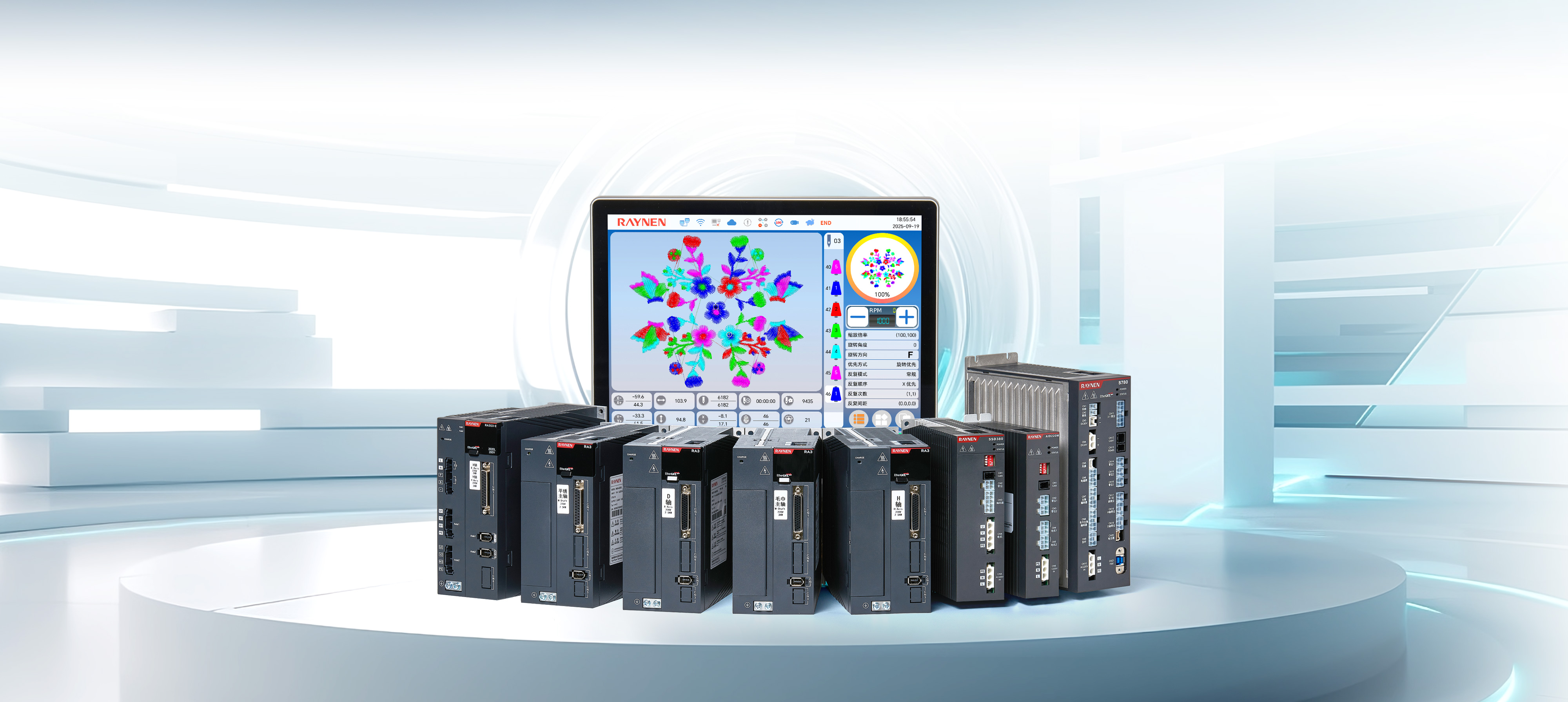 S700系列刺繡機電控系統(tǒng)通過緊湊的機身設(shè)計、標(biāo)準(zhǔn)化部件應(yīng)用,提升了空間利用率和設(shè)備維護便捷性,降低了運營成本。其無線操作屏、高精度絕對值編碼器伺服控制系統(tǒng)、全新通用專機伺服等技術(shù)創(chuàng)新,不僅提高了生產(chǎn)效率和產(chǎn)品質(zhì)量,還通過移框智能防夾設(shè)計、安全光幕和高清顯示屏增強了設(shè)備的安全性和操作性。同時,配置了智慧工廠網(wǎng)絡(luò)管理接口,實現(xiàn)了設(shè)備的遠程智能化管理,并在精度控制上達到行業(yè)領(lǐng)先水平。