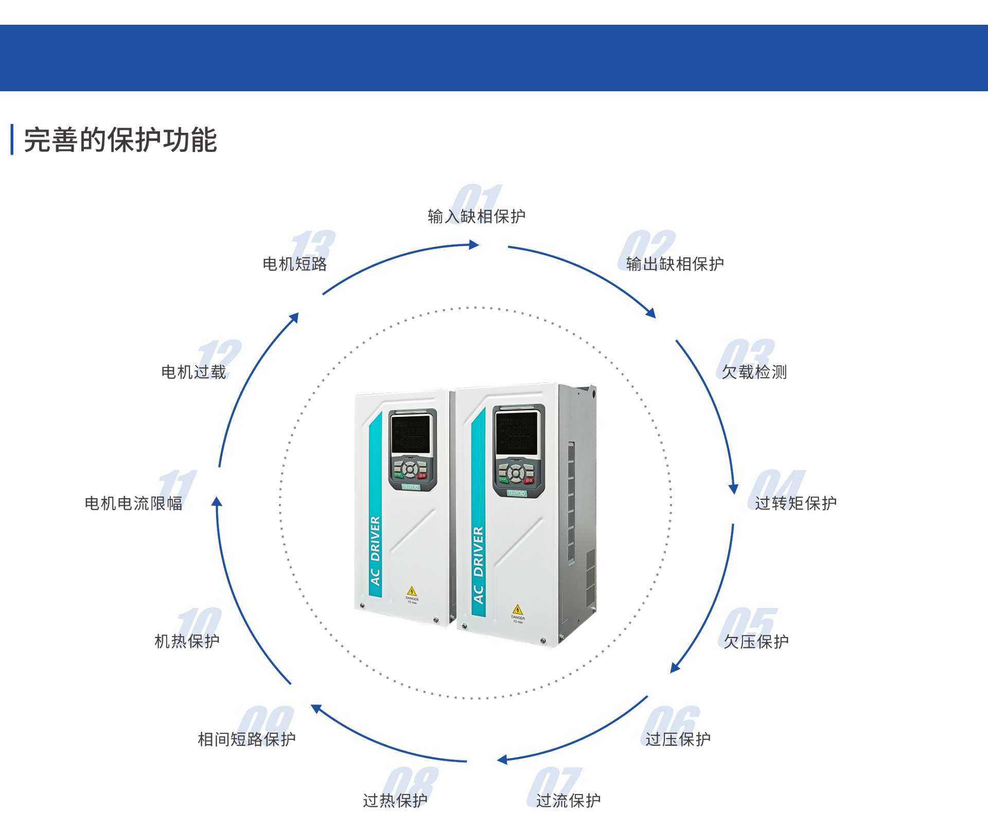 | 變頻器保護(hù) | 輸?缺相保護(hù)、輸出缺相保護(hù)、?載檢測、過轉(zhuǎn)矩保護(hù)、?壓保護(hù)、過壓保護(hù)、過流保護(hù)、過熱保護(hù)、 相間短路保護(hù) | |